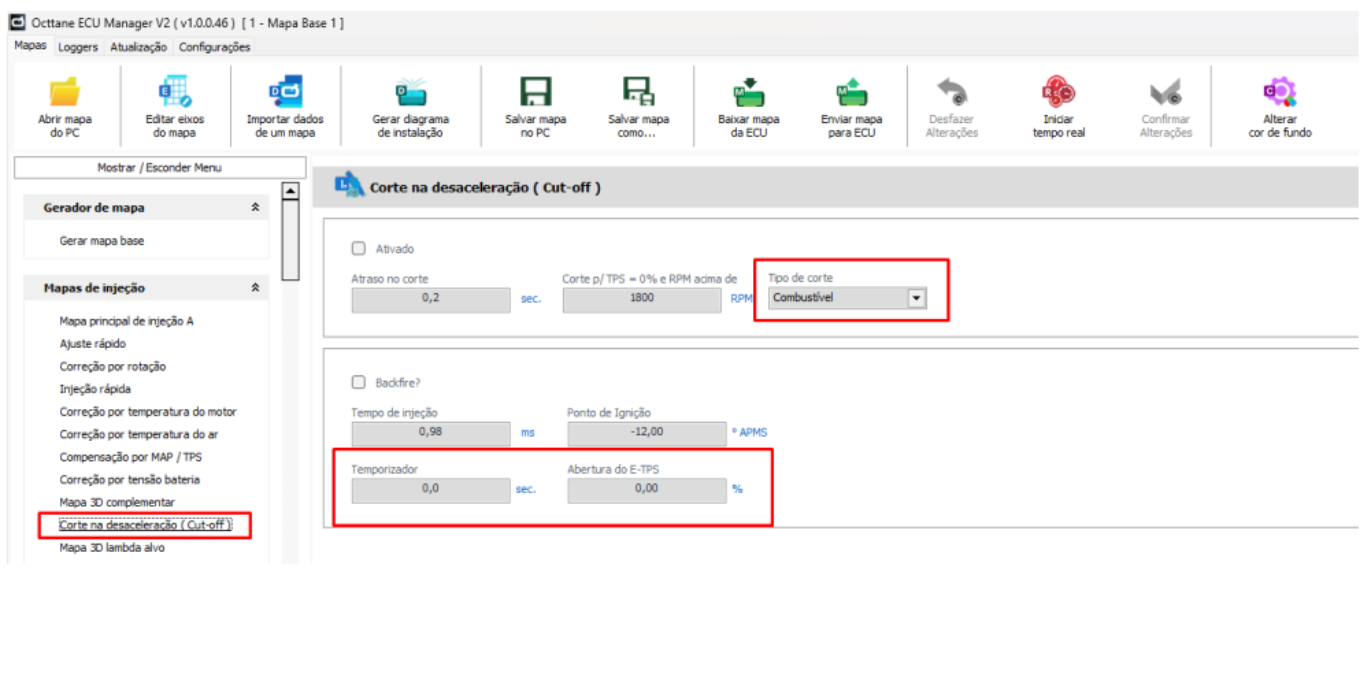 Outra novidade é a função Cut Off, que permite cortar a alimentação de combustível ou a ignição do motor em situações de emergência, como superaquecimento ou falha de componentes. O tipo de corte pode ser escolhido pelo usuário, e o tempo de duração do Backfire pode ser ajustado.