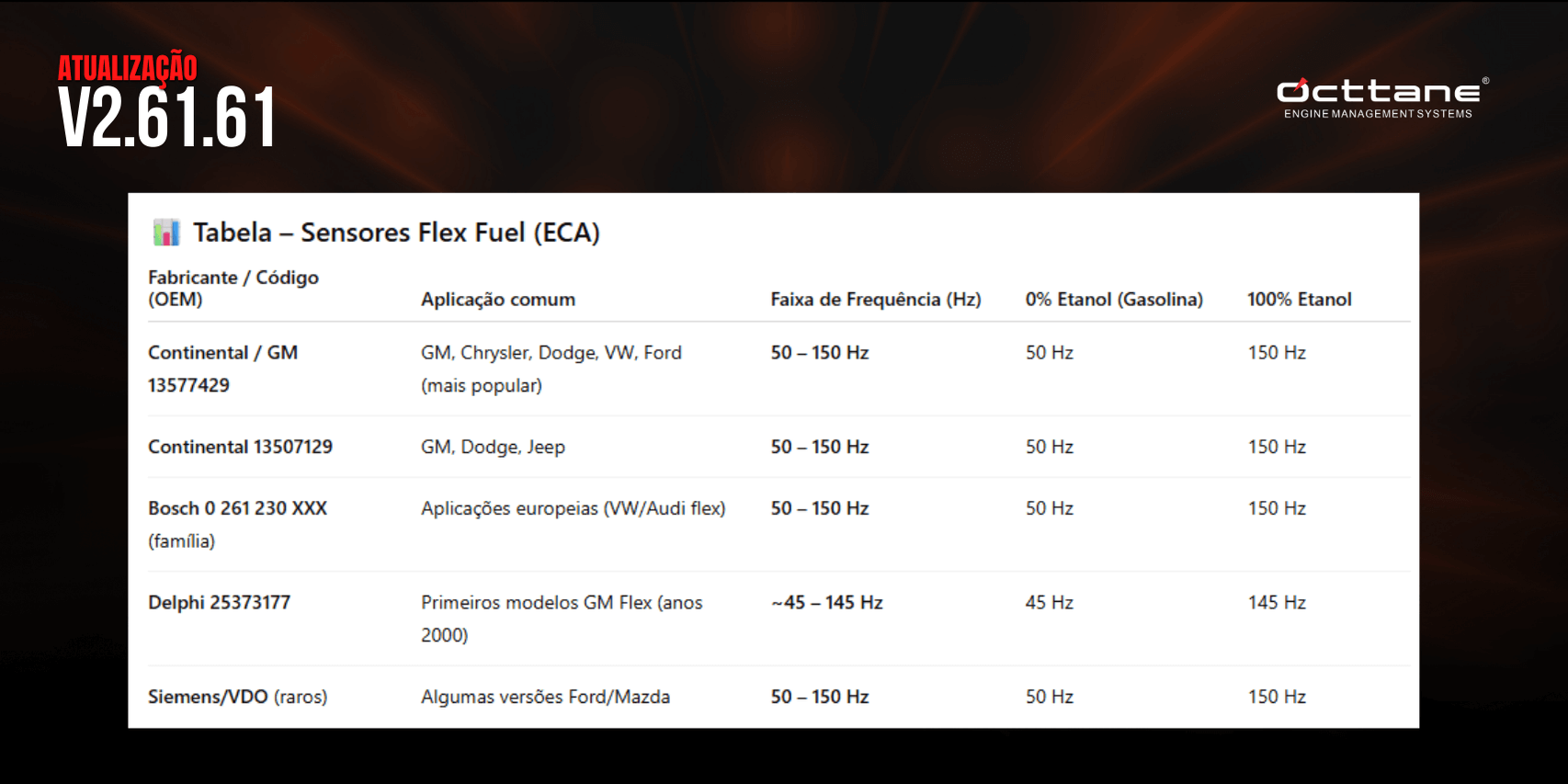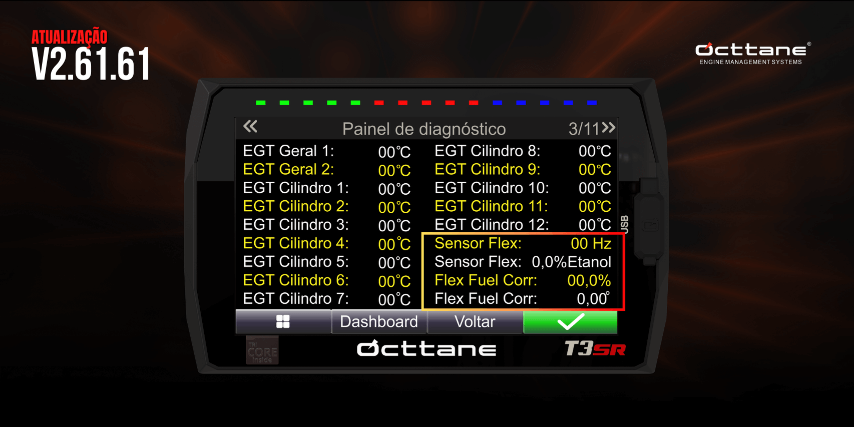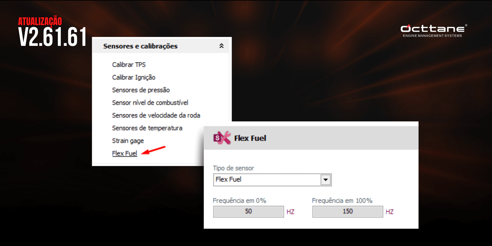 Com a V2.61.61, a calibração e a configuração do sensor Flex Fuel ganham um novo patamar de inteligência e automação.